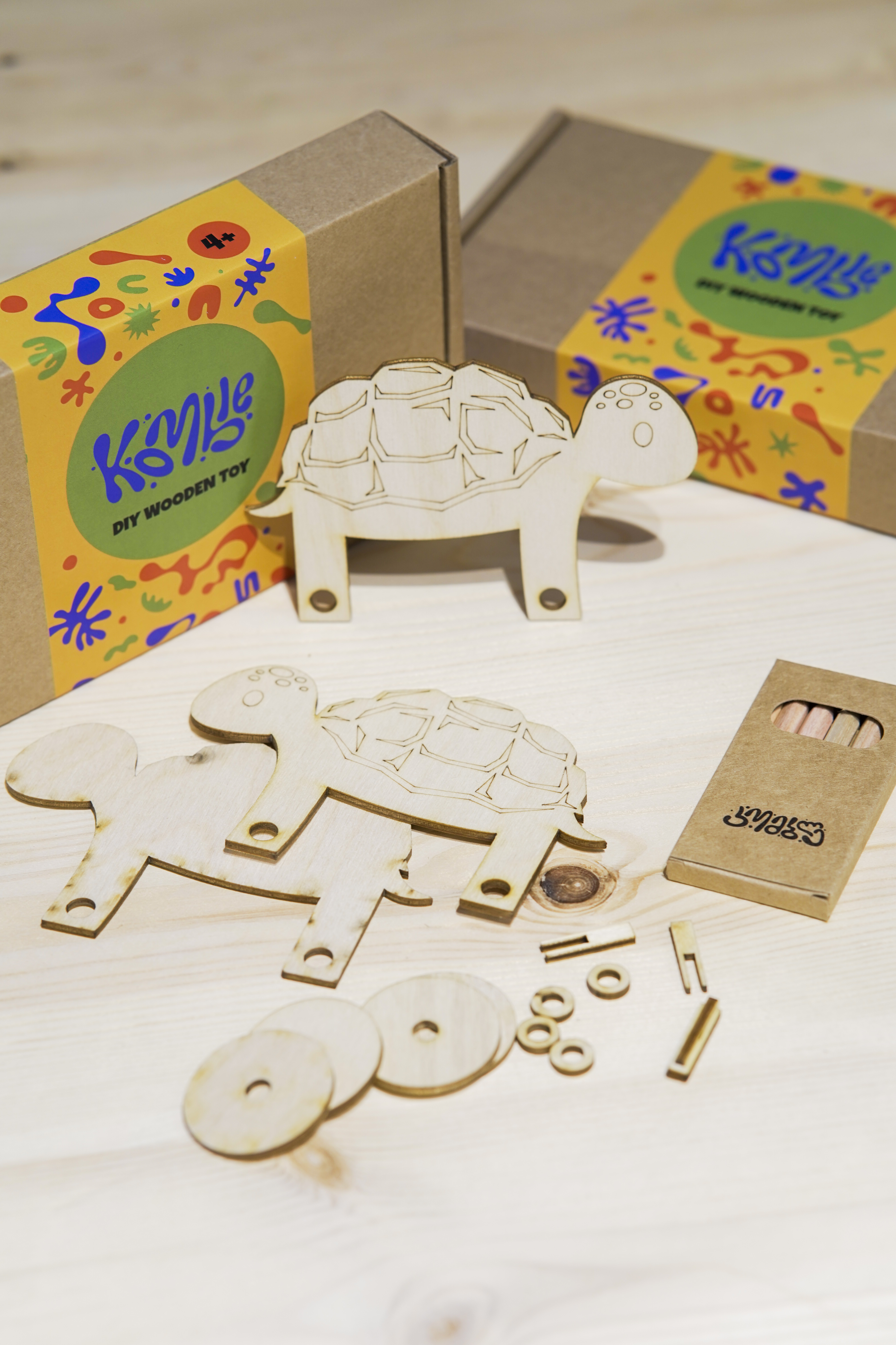 DIY ხის სათამაშოს ნაკრები აძლევს ბავშვებს შესაძლებლობას თავად შექმნან ხის სათამაშო — აწყობენ, აფერადებენ და აძლევენ ფორმას თავიანთ წარმოსახვას.