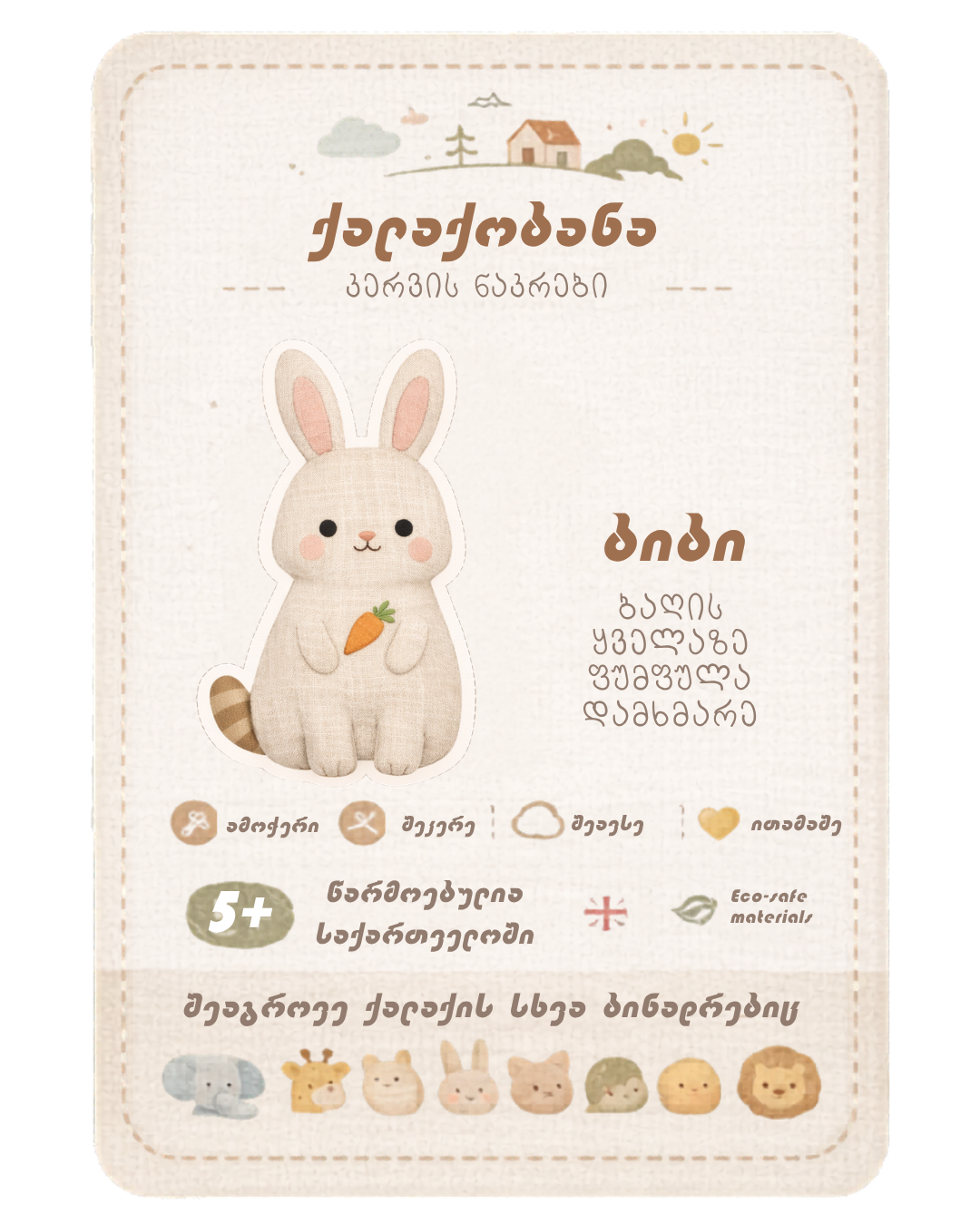 • წინასწარ დაბეჭდილი ფიგურა ცხოველის გამოსახულებით