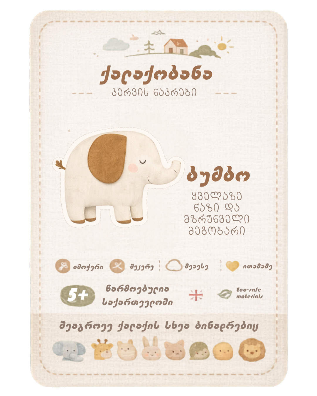 • წინასწარ დაბეჭდილი ფიგურა ცხოველის გამოსახულებით