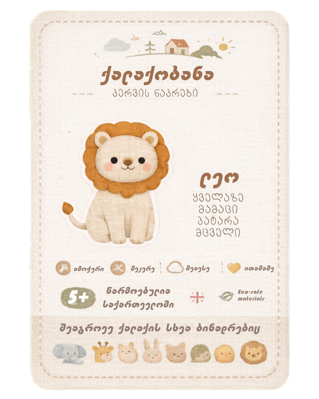 • წინასწარ დაბეჭდილი ფიგურა ცხოველის გამოსახულებით
