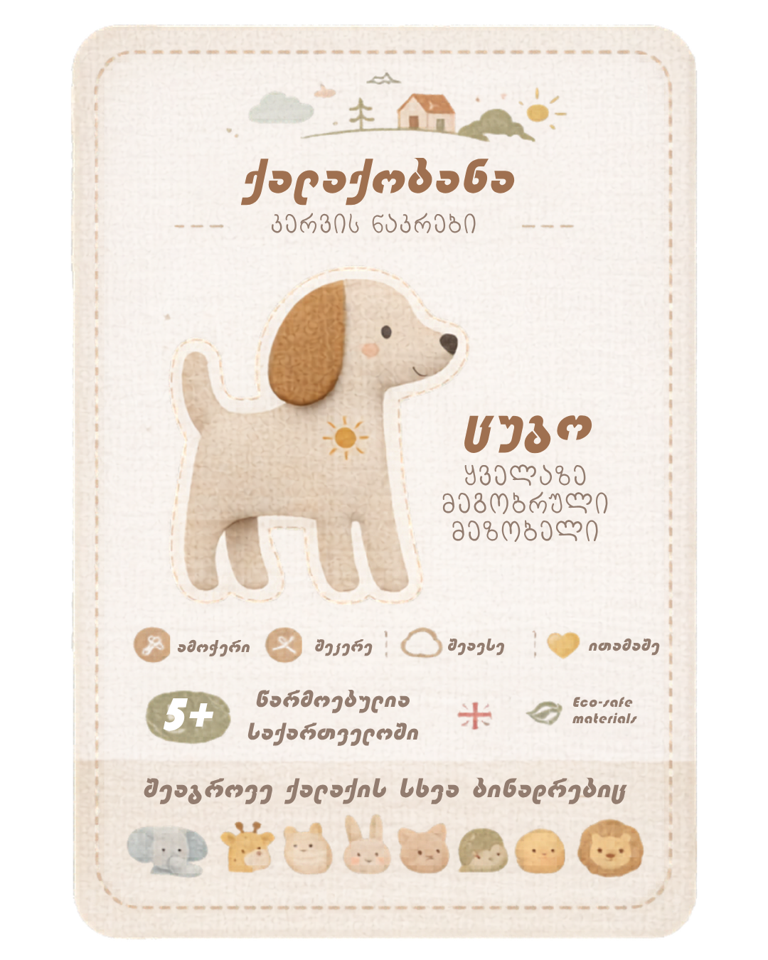 • წინასწარ დაბეჭდილი ფიგურა ცხოველის გამოსახულებით