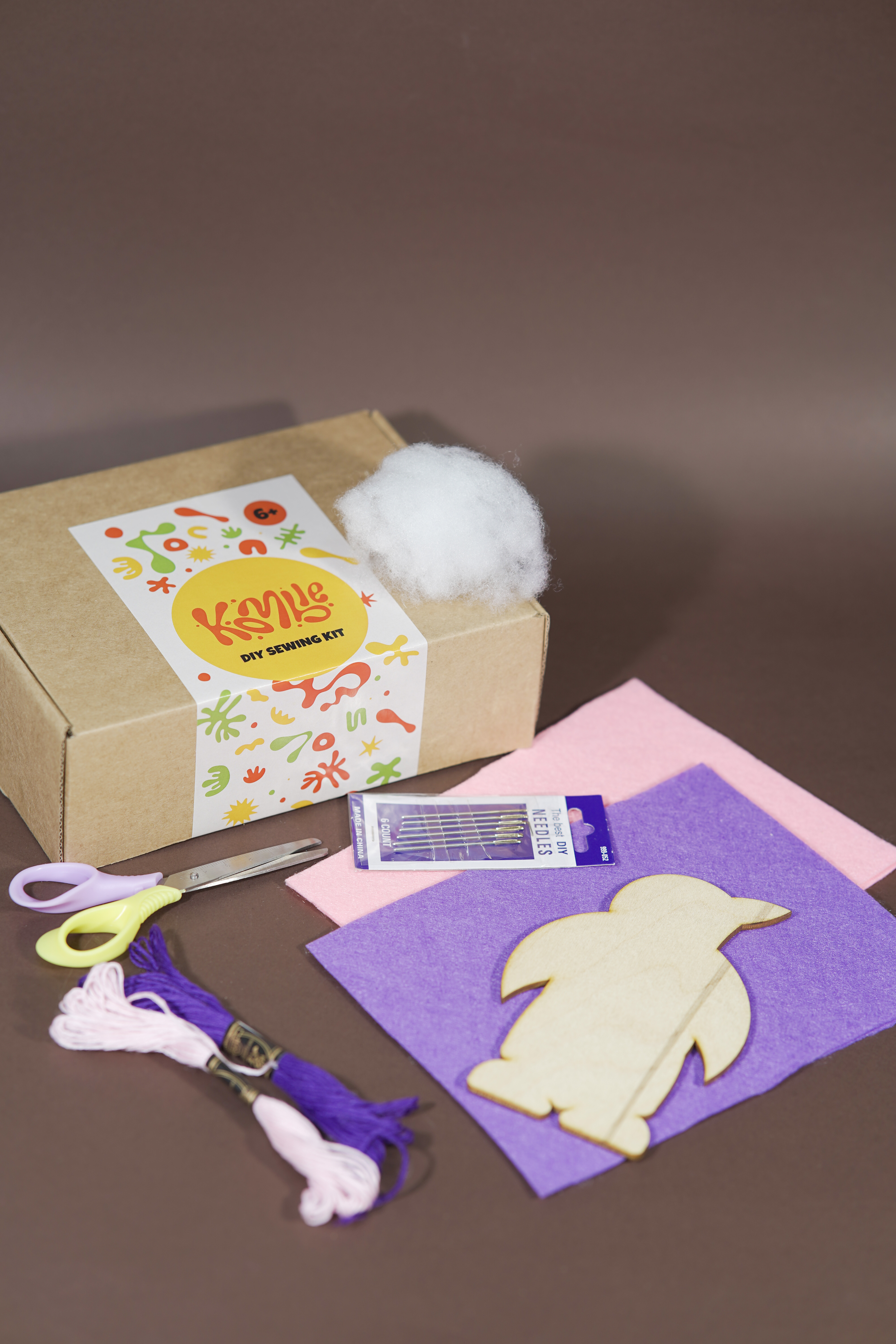 კერვის DIY ყუთში იპოვი ყველაფერს, რაც საჭიროა საკუთარი რბილი სათამაშოს შესაქმნელად — ფერად ქსოვილებს, ნემსსა და ძაფს, ამოსაჭრელ ფორმებს და მარტივ ინსტრუქციას.